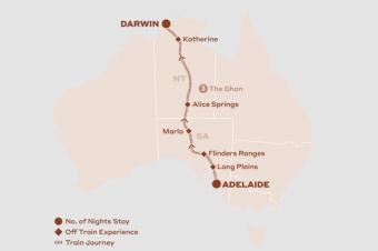 - Immersive Off Train Experiences in a South Australian wine region, Flinders Ranges, Marla, Alice Springs, and Katherine.