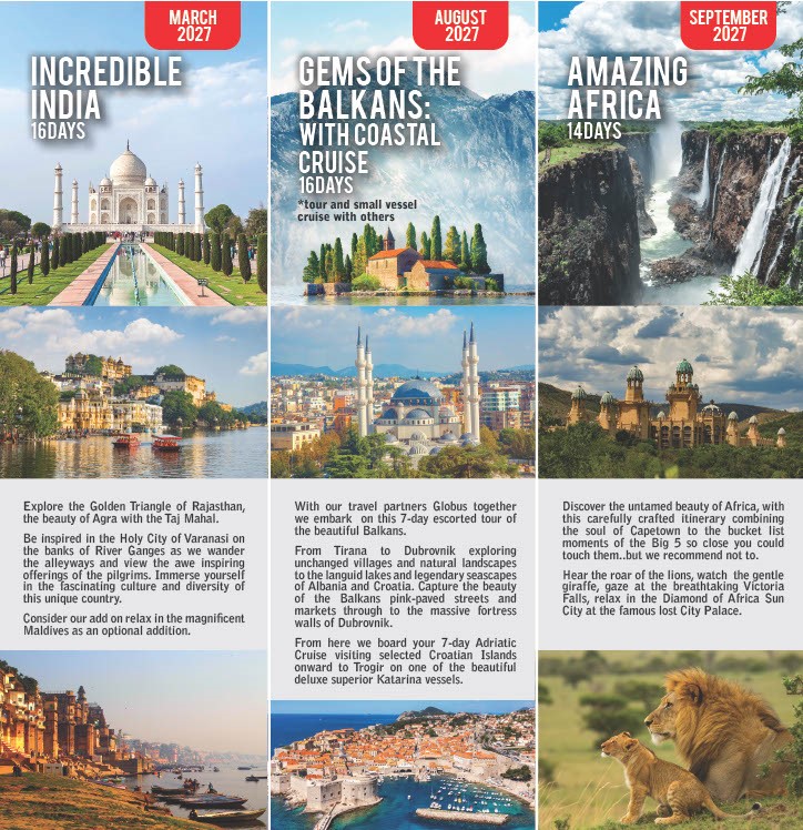 Open your door to explore the world with a fully escorted boutique tour literally with your trusted travel agents of Vincent George Travel.
